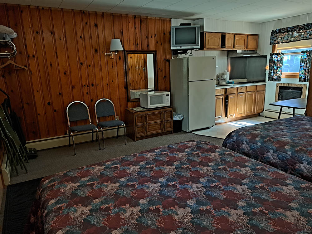 Motel units come with two queen or full size beds and all bed linens, pillows, towels, refrigerators, coffee maker, air conditioning, microwave and TV. Kitchenette units also have a countertop stove. 3 night minimum for holidays and opening gun deer hunt weekends.