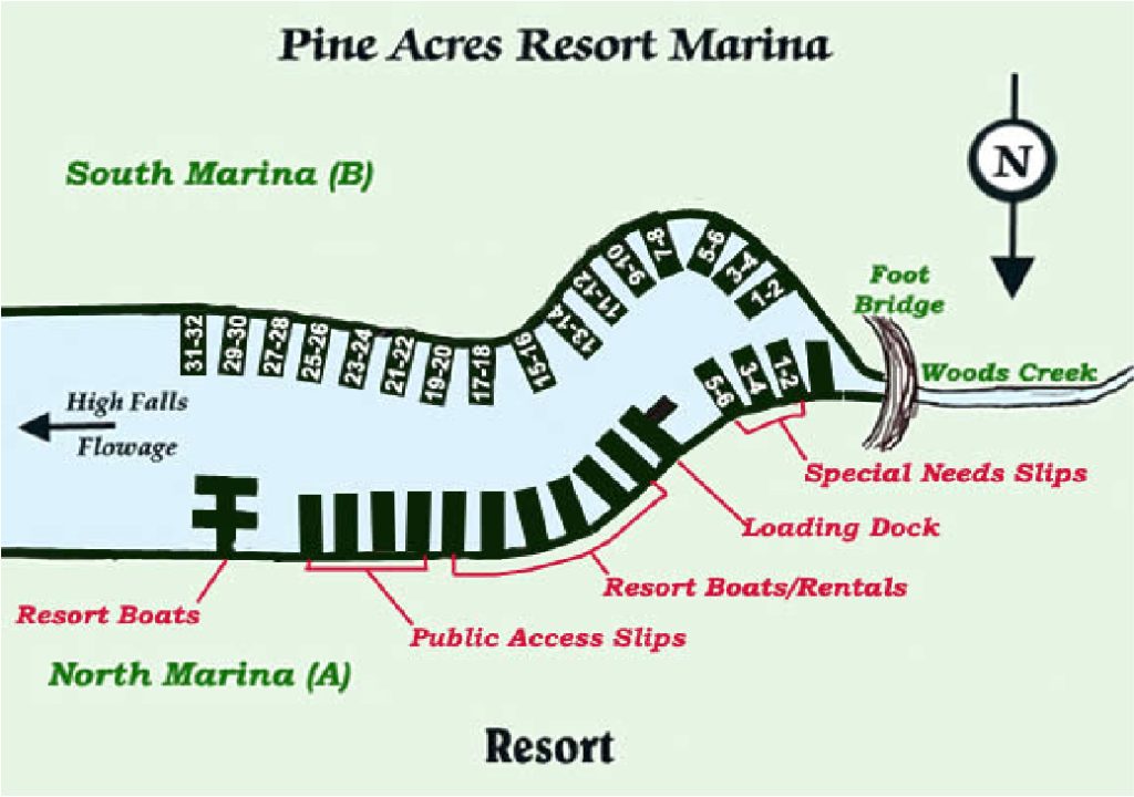 - All customers must notify Pine Acres Resort, Inc. of their intent to move their boat into or out of their designated slip at the start and completion of the boating season.