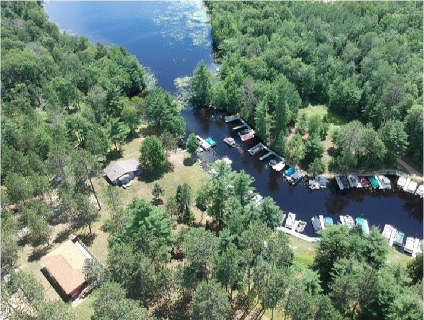 Pine Acres Resort overlooks Woods Creek as it joins with High Falls Flowage. Our waterfront docking facility is one of a few places on High Falls Flowage that you can dock your boat right outside your cabin all week while you vacation.